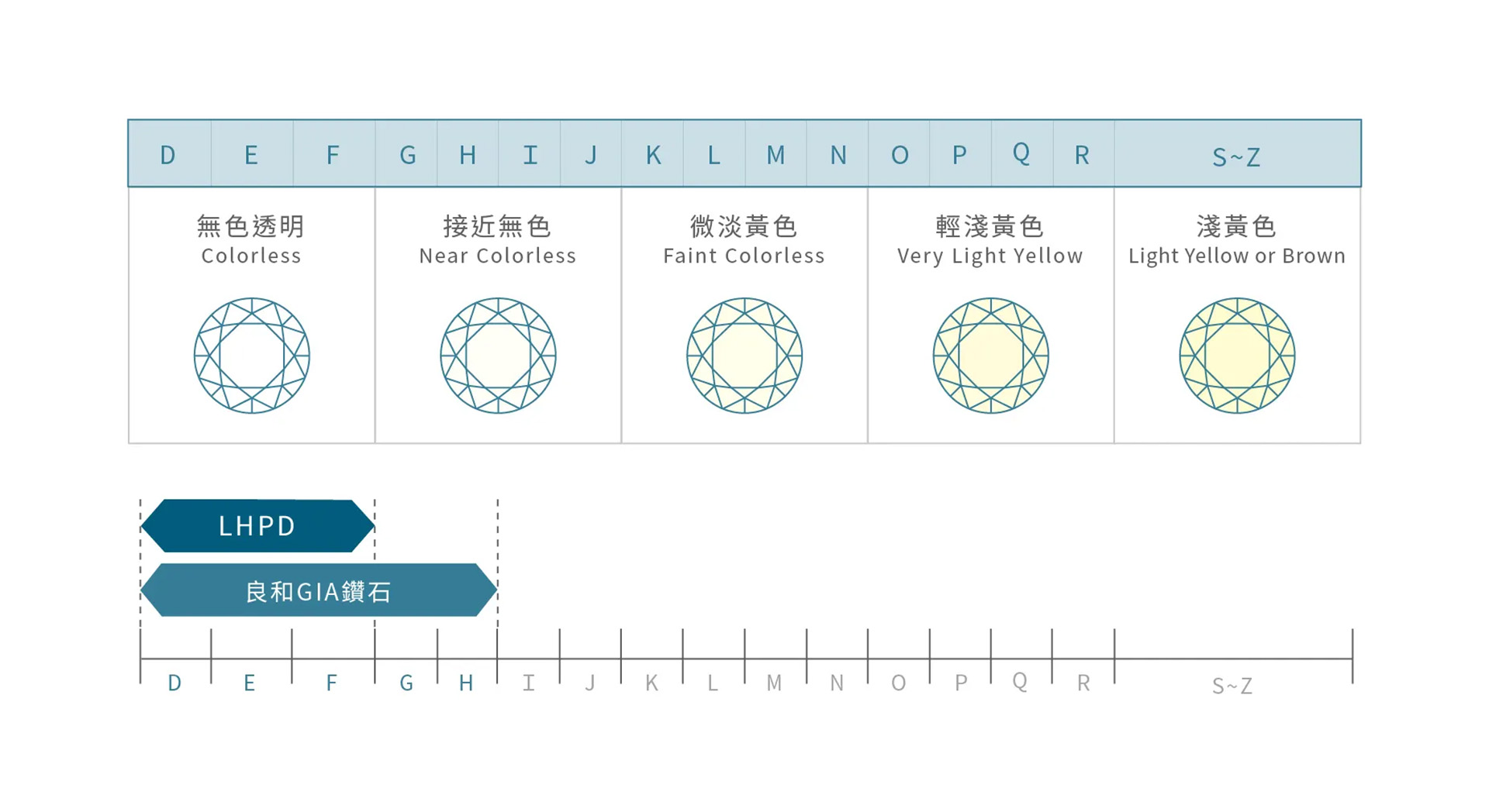 鑽石的天然體色,可從透明無色、微黃至罕見的金黃色、綠色、橘色、藍色、粉紅及其他繽紛色彩。 |