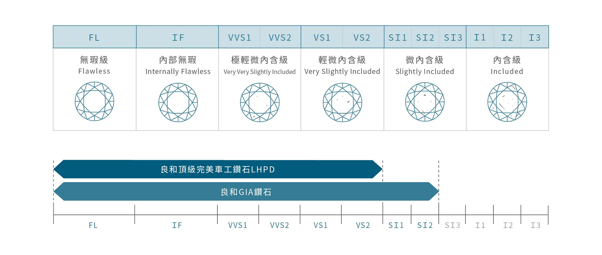 鑽石淨度是指評估鑽石表面瑕疵或鑽石內部特徵,在鑽石形成時被包含在原礦中的異物晶體或鑽石晶體、生長過程中產生的結構缺陷,或是在人工切磨時所產生的外部缺陷皆稱之;一般寶石級鑽石的淨度特徵肉眼不可見,在 10 倍放大觀察下,依照大小 (size) 、數量 (number)、位置 (position) 、種類 (nature) 及明顯度(relief) 來決定鑽石之淨度等級。 |