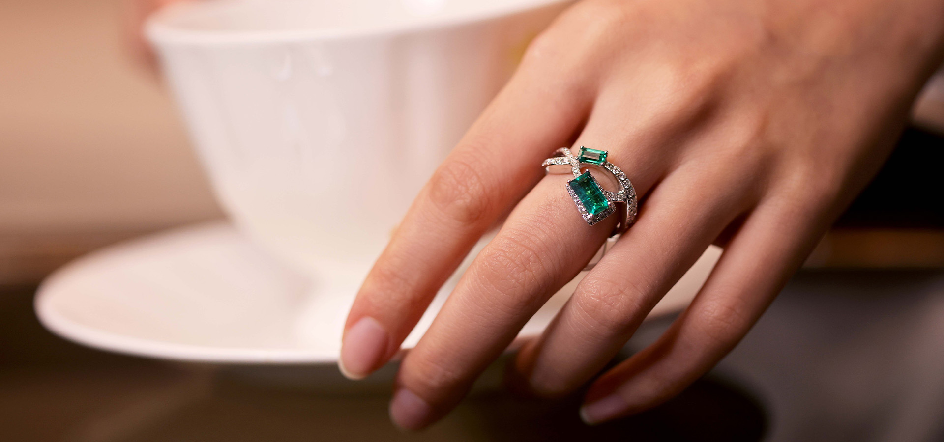 | 祖母綠嫩綠的色澤十分適合皮膚白皙的女性配戴,良和最具魅力之一的祖母綠作品便是祖母綠流蘇造型的長鍊以及小巧的Y字鏈珠寶,其翠綠顏色不僅呼應女性白裡透紅的肌膚,更延長頸部的線條比例,巧妙凸顯配戴者肩頸與鎖骨的魅力。 |