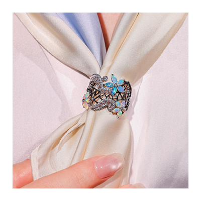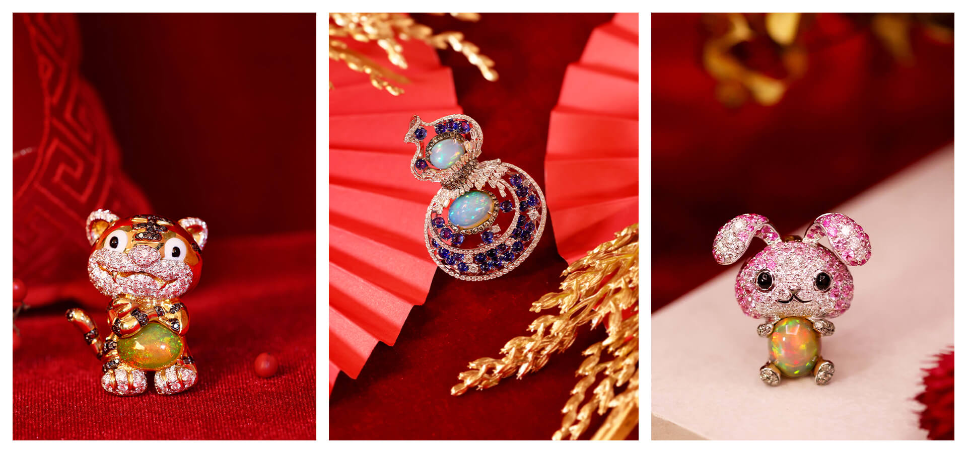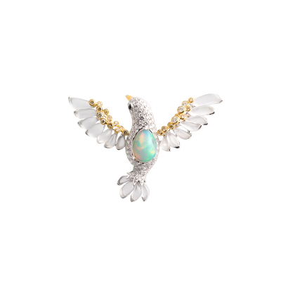 | 良和擅長以蛋白石打造各種可愛小動物,甚至化身為家中可愛的寵物,除了作為胸針配戴,也可以別在衣領或是罩衫的中間,為日常的配戴增添層次感,也身兼時尚與陪伴的意義;良和也打造多款鳥兒造型的戒指,彷彿停駐在指間為你打造你專屬的靈動魅力。 |