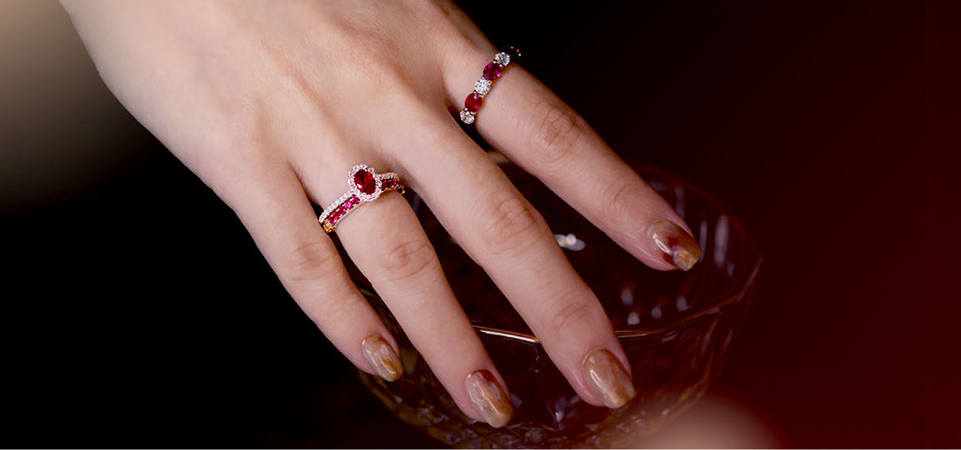 | 暖色調的紅寶石,兼具熱情與柔美的特點,賦予配戴者明媚而堅定的氣勢,散發著女性自信之美,同時也可以擁有小女人般的細緻與優雅。 良和設計多款紅寶石戒指,透過疊戴的巧思,挑起你的時尚靈魂也營造你的百變風格;細膩的紅寶石手環,搭配近年流行的喇叭袖服飾,宛如將小花圈戴在手上,也成為穿搭中的別緻小亮點。 |