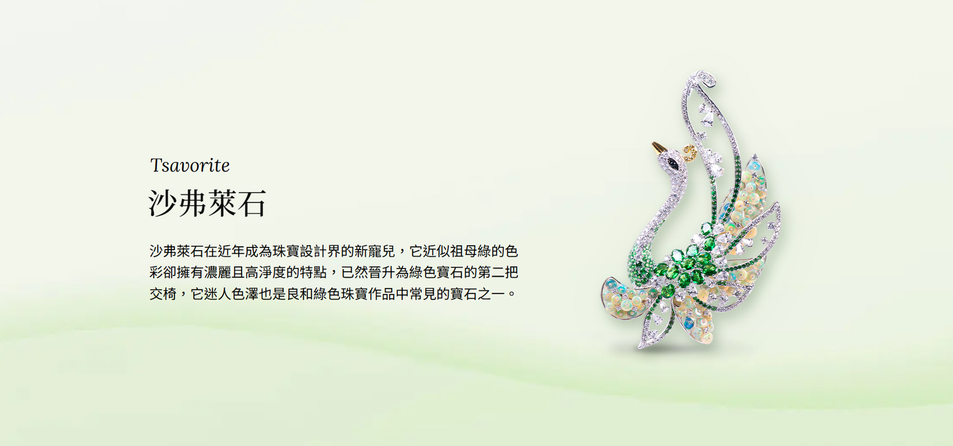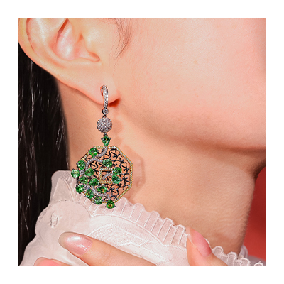 沙弗萊石顏色為明亮的翠綠色,被譽為寶石界的「綠精靈」,良和擅長以沙弗萊石打造靈動的珠寶,像是華美高貴的枝葉造型珠寶,是大自然賦予的靈感泉源,讓配戴者展現自然的優雅自信。 |