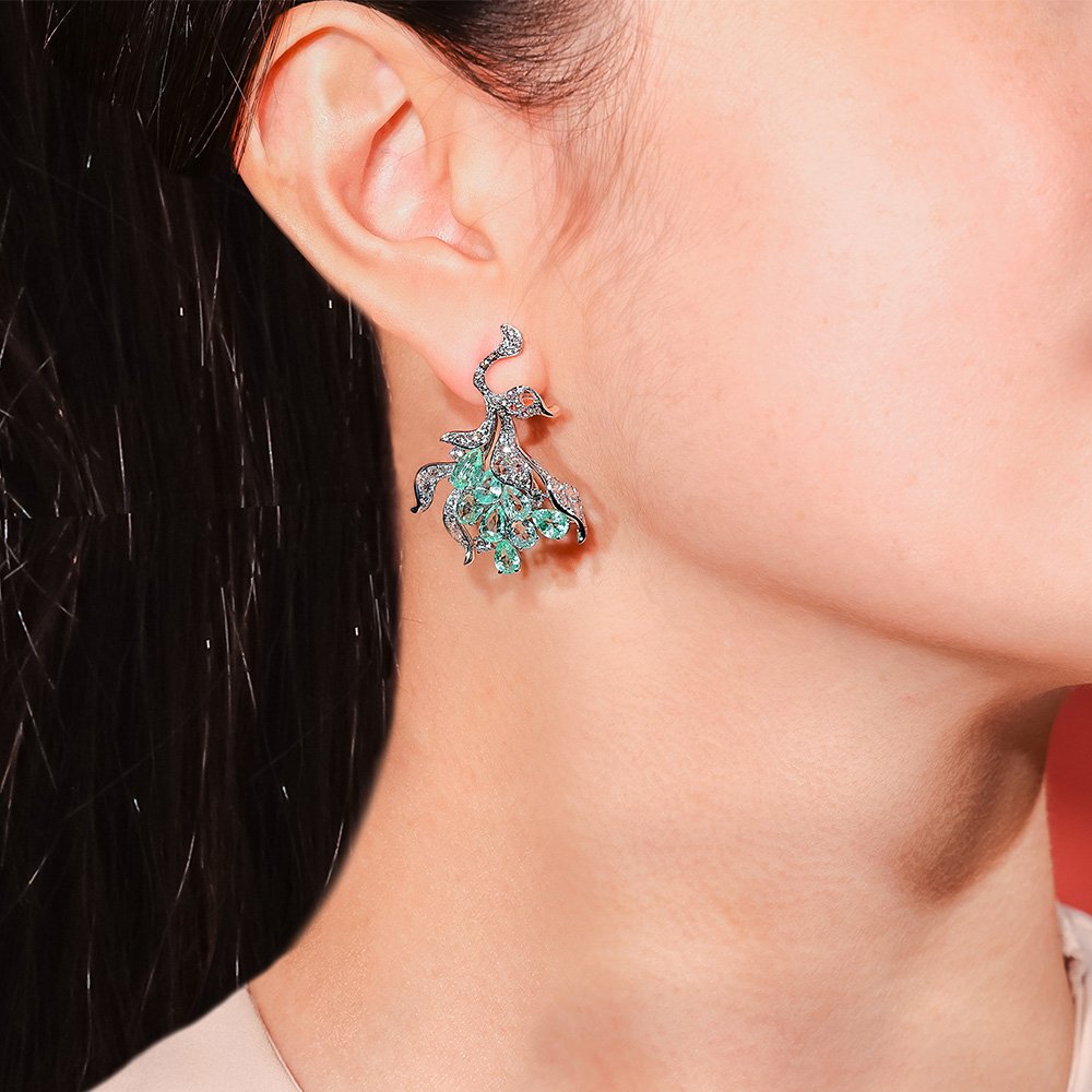天然沙弗萊鑽石耳環