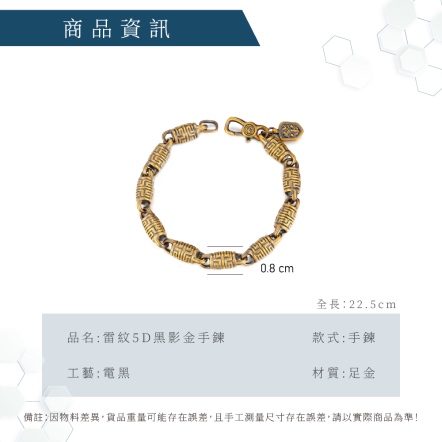 雷紋古法黑影金手鍊