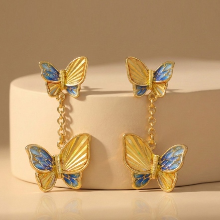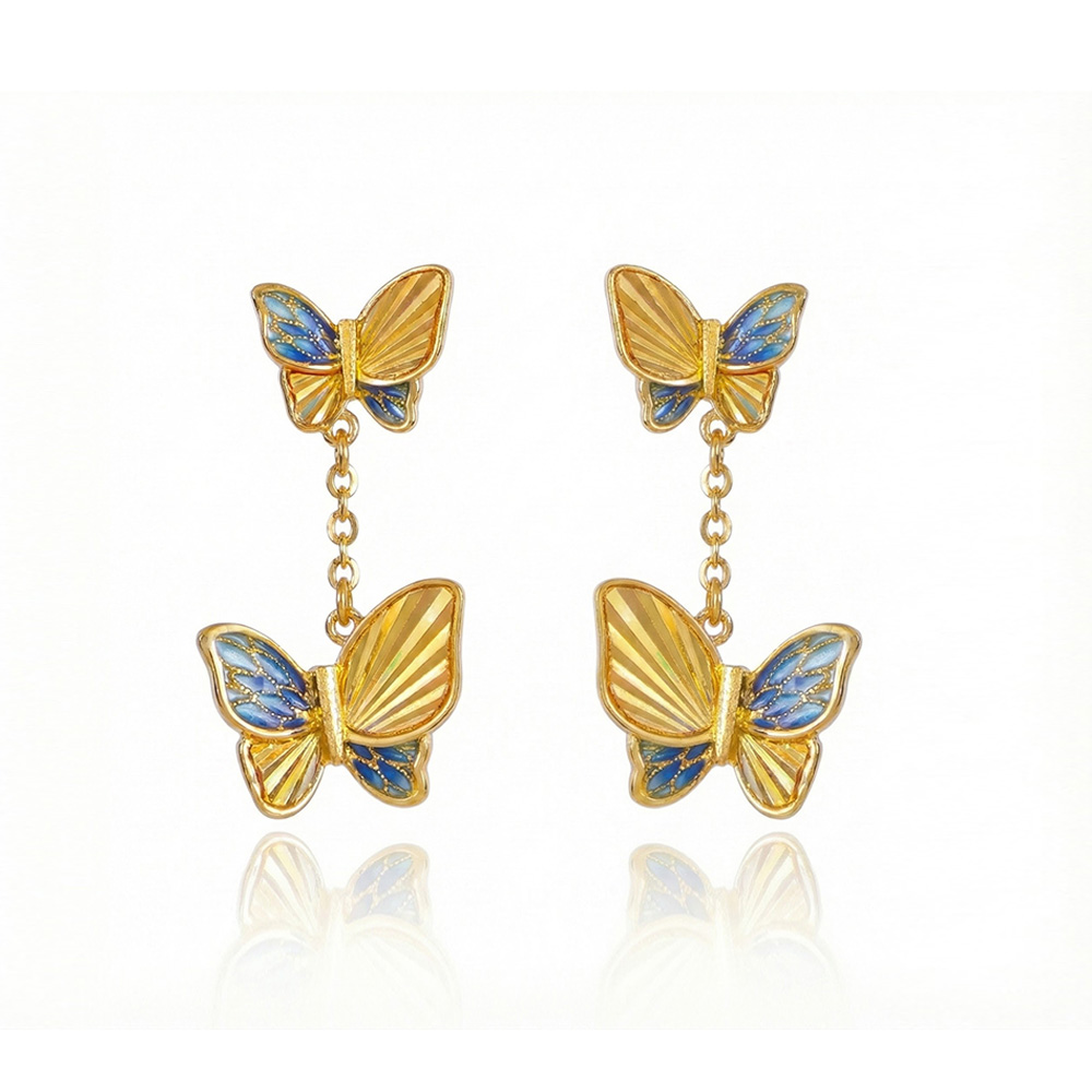 蝶羽紛飛琺瑯耳環