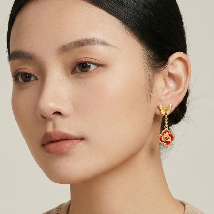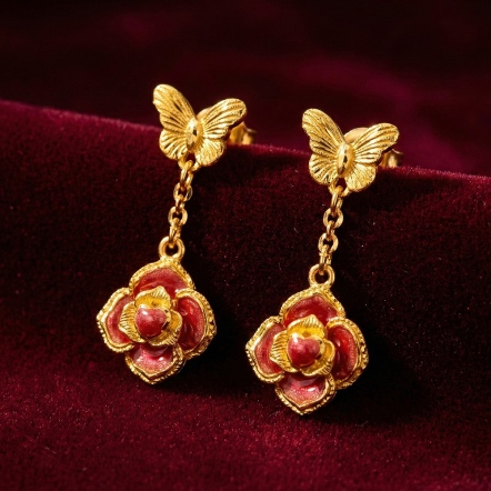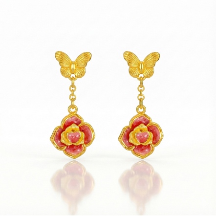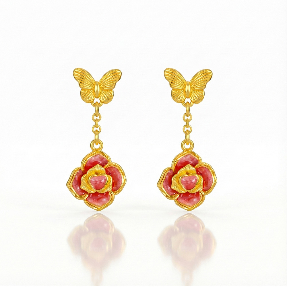 蝶舞玫瑰琺瑯耳環
