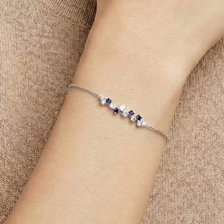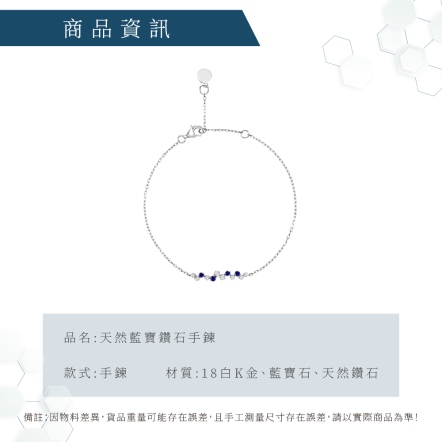 18白K金、藍寶4顆 0.11克拉、鑽石8顆 0.13克拉