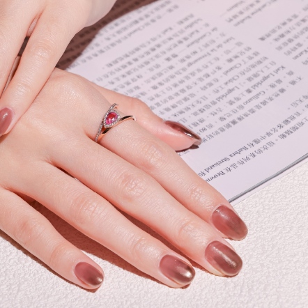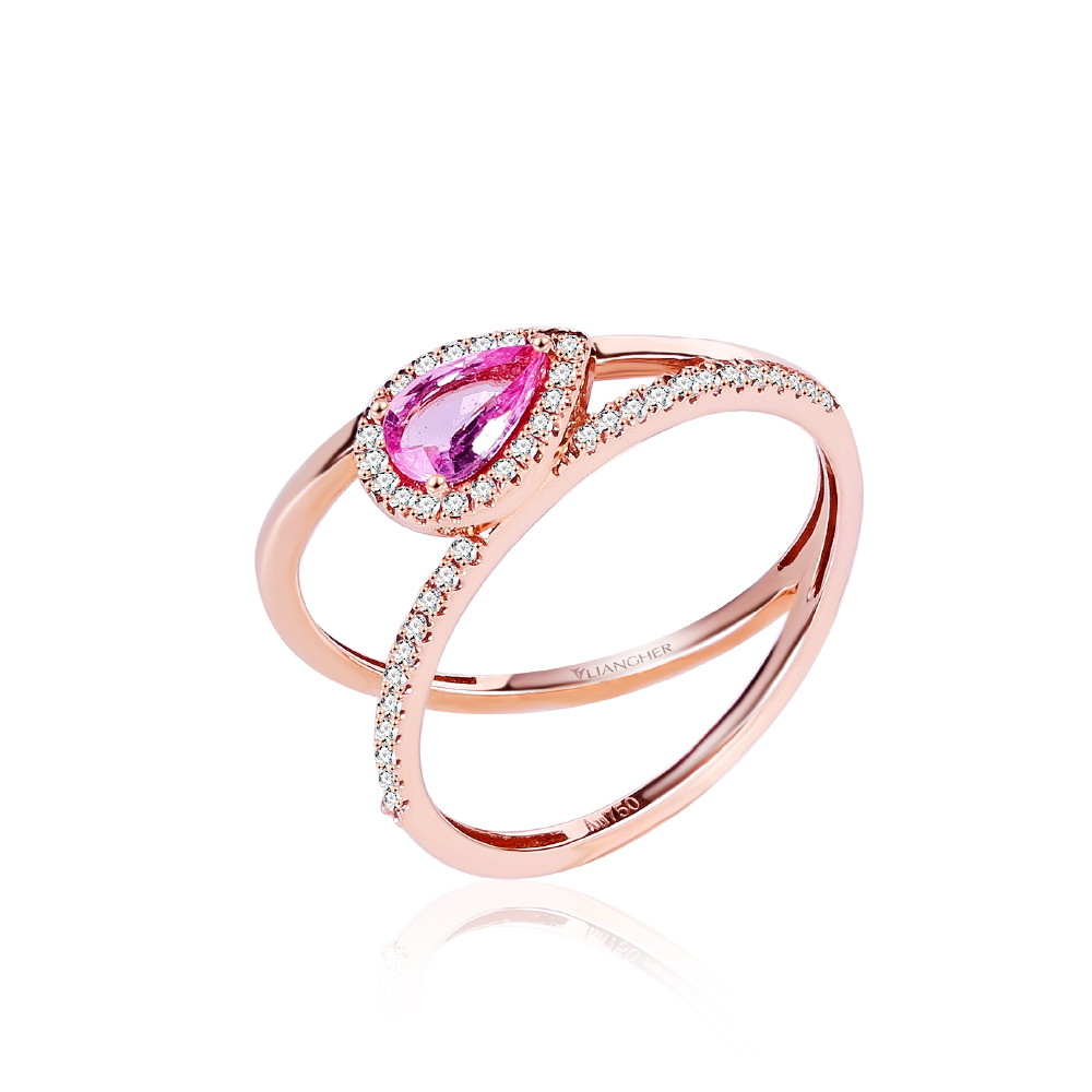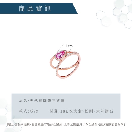 18玫瑰K金、粉剛1顆 0.45克拉、天然鑽石43顆 0.14克拉