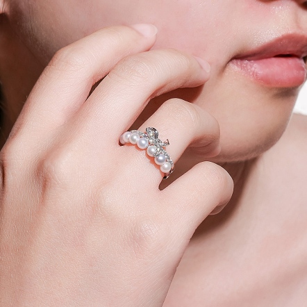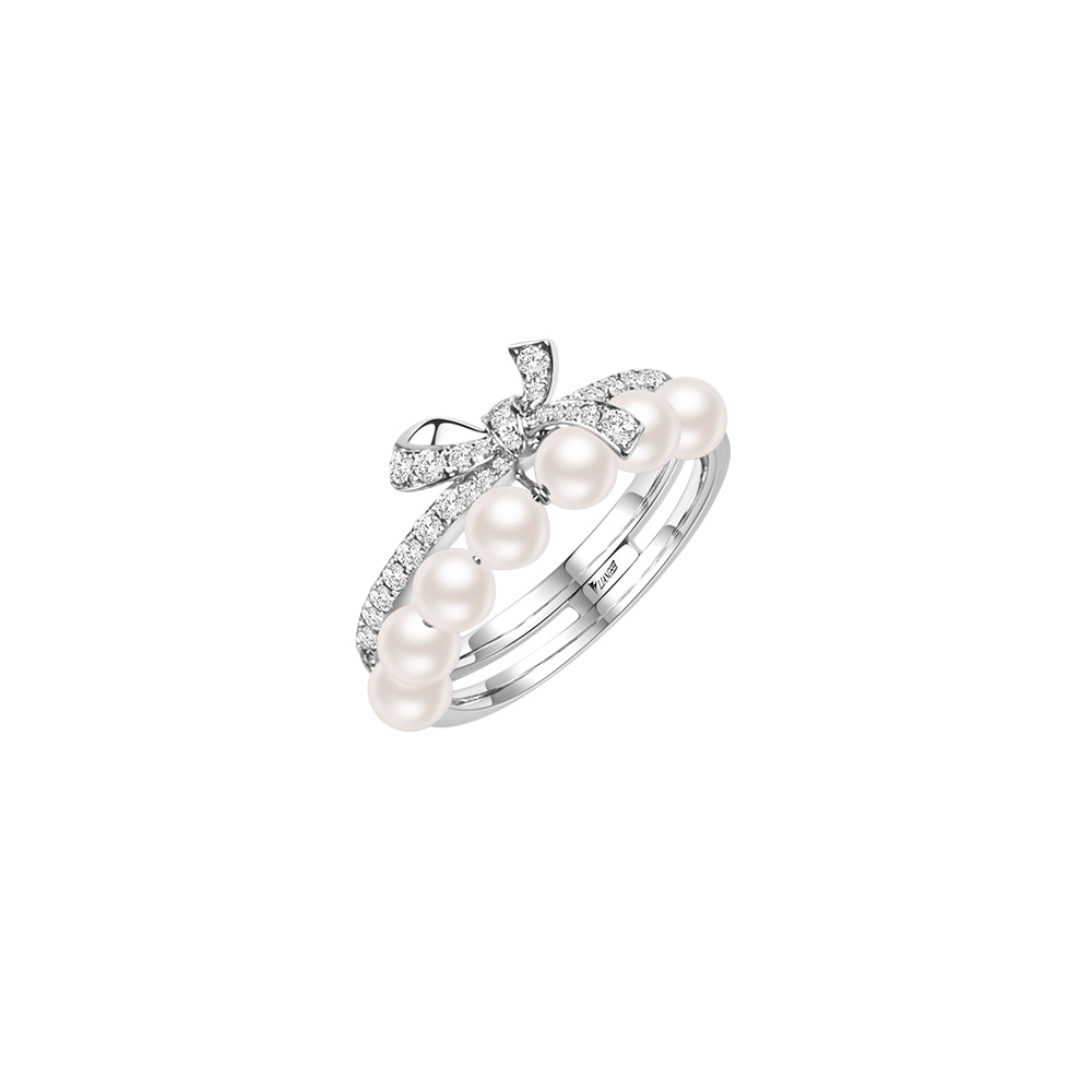 18K白金、天然日本養珠7顆、小鑽32顆 0.32克拉