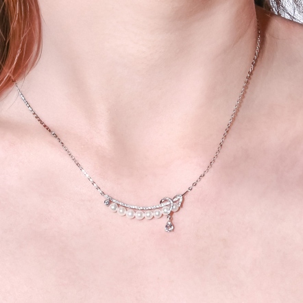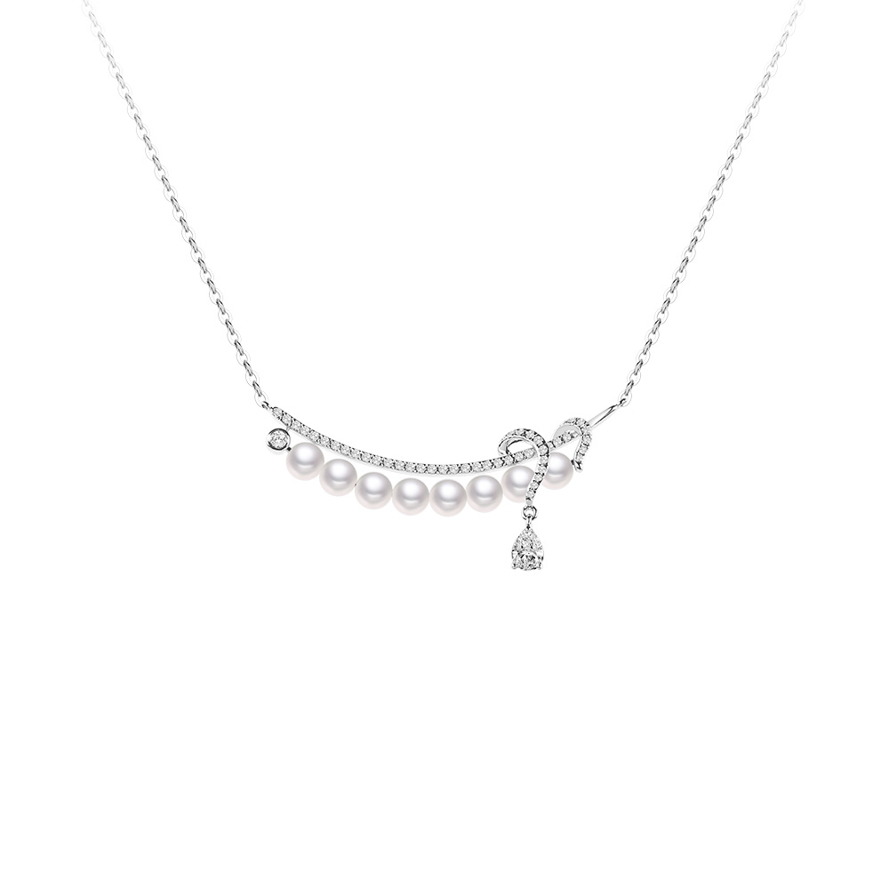 18K白金、天然日本養珠8顆、彩剛1顆0.2克拉、鑽石48顆0.15克拉