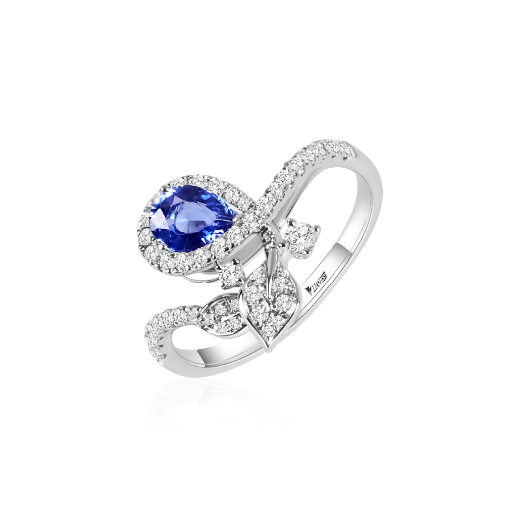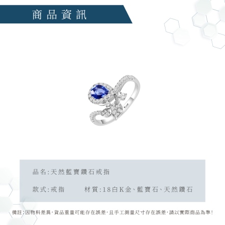 18白K金、藍寶石1顆 0.57克拉、天然鑽石48顆 0.40克拉