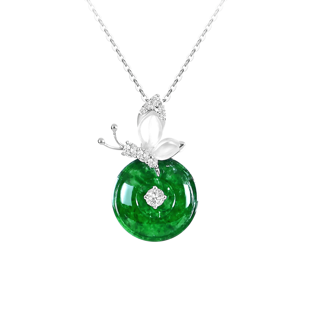 18K白金、天然翡翠1顆、天然冰翡2顆、鑽石9顆 0.09克拉