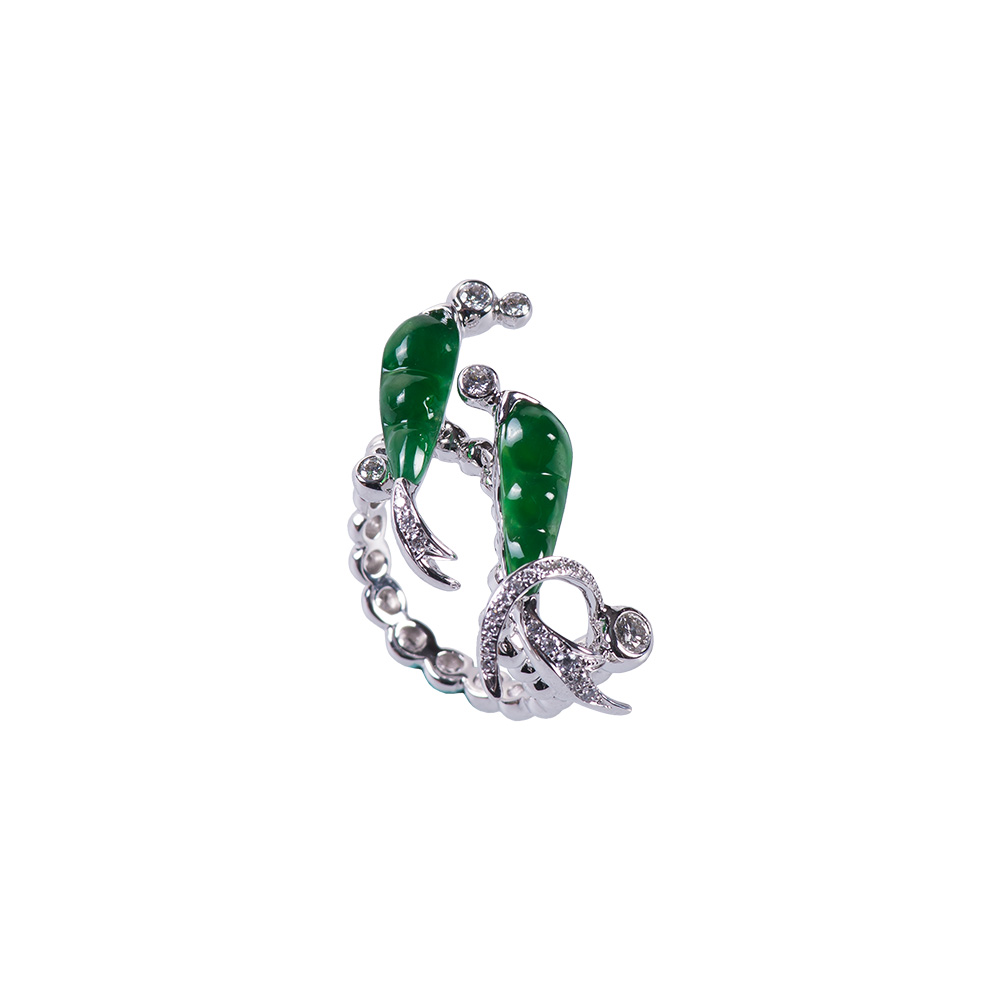 18K白金、天然翡翠2顆、鑽石27顆 0.29克拉