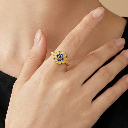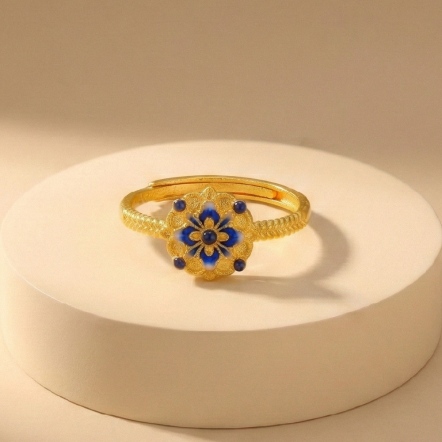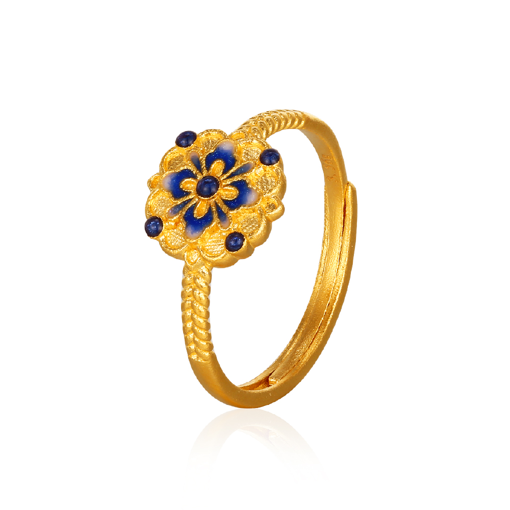 青花花韻古法金戒指