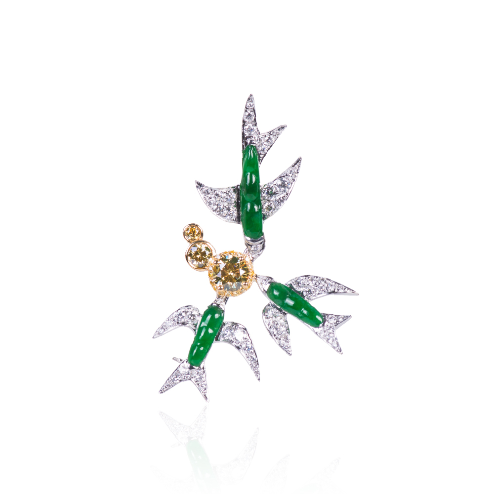 18多色K金、天然翡翠3顆、黃鑽3顆0.61克拉、黃鑽18顆0.05克拉、鑽石56顆0.64克拉
