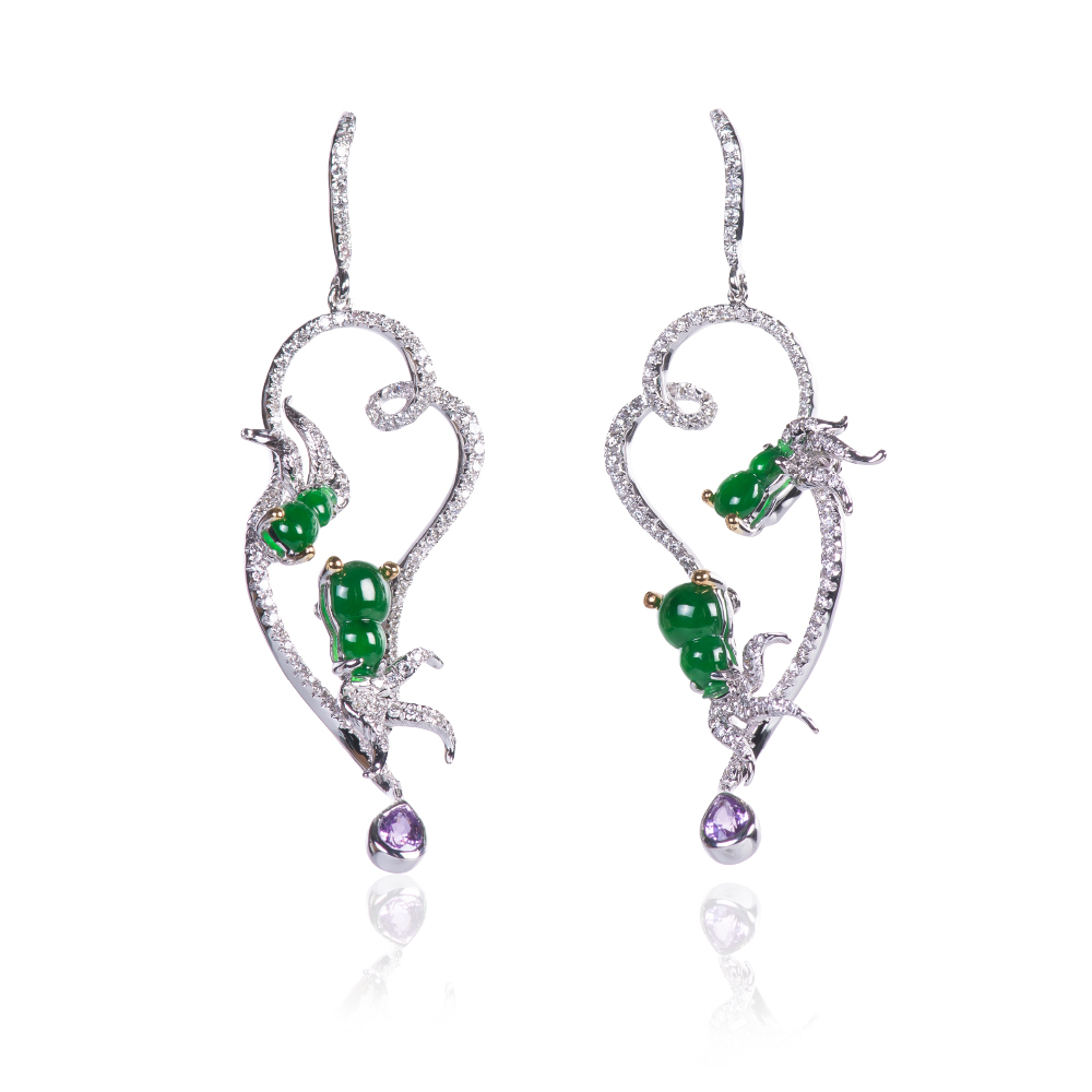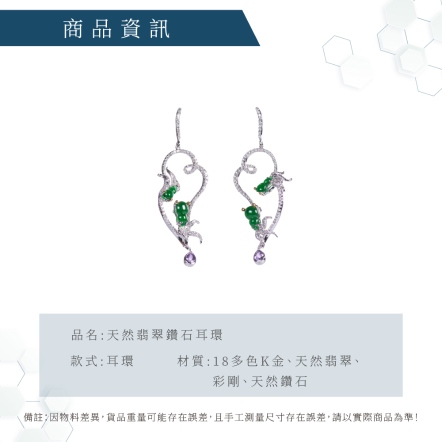 18多色K金、天然翡翠4顆、彩剛 2顆0.42克拉、鑽石 240顆0.81克拉