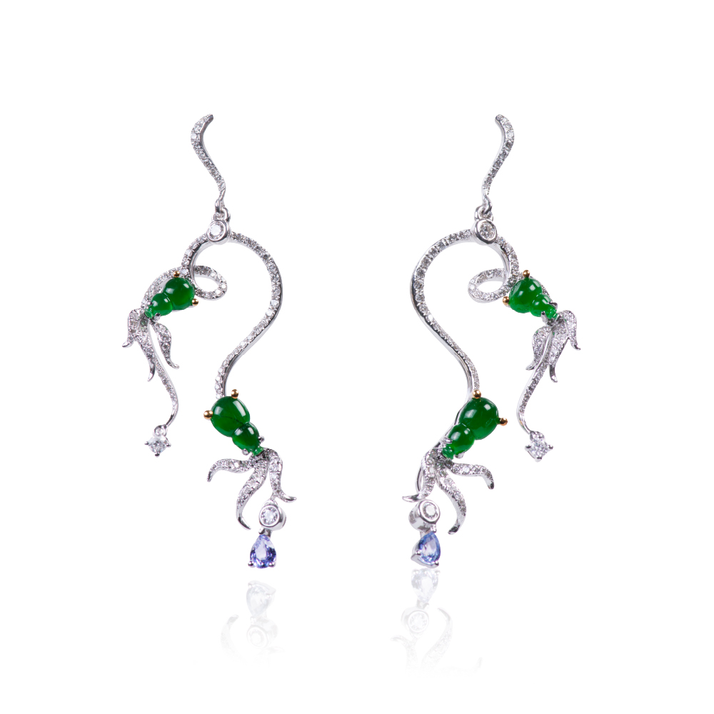 18多色K金、天然翡翠4顆、彩剛2顆 0.43克拉、鑽石200顆 0.97克拉