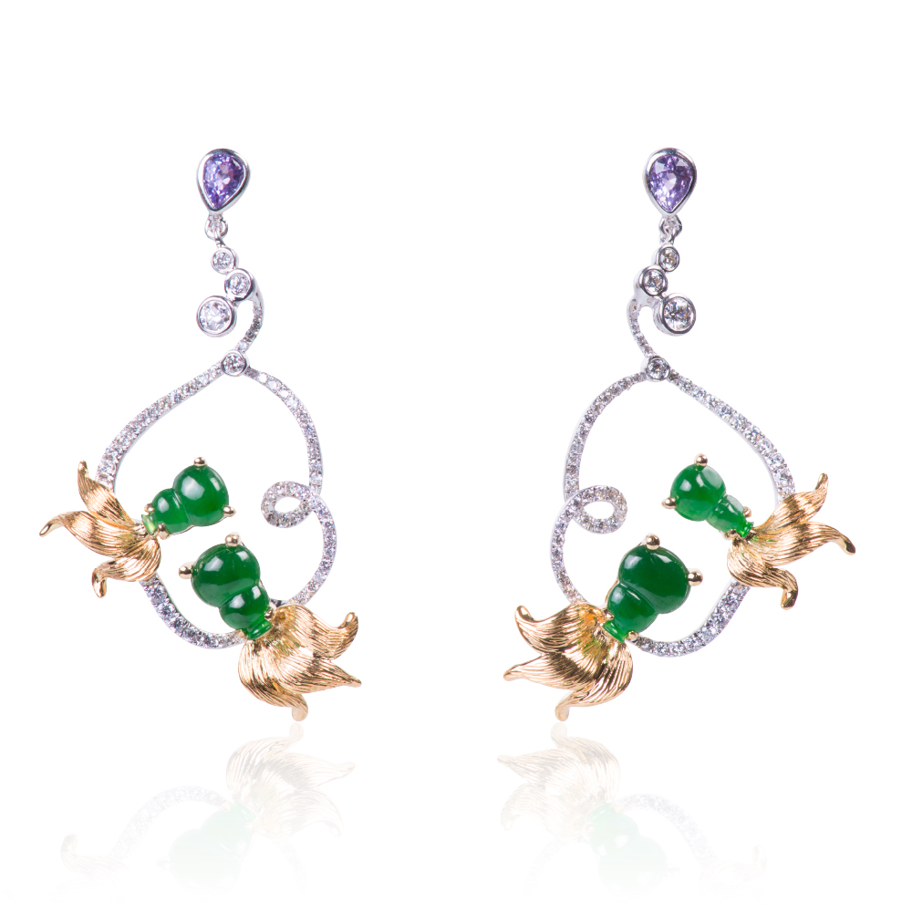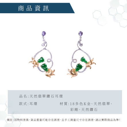 18多色K金、天然翡翠4顆、彩剛2顆0.48克拉、鑽石118顆0.75克拉