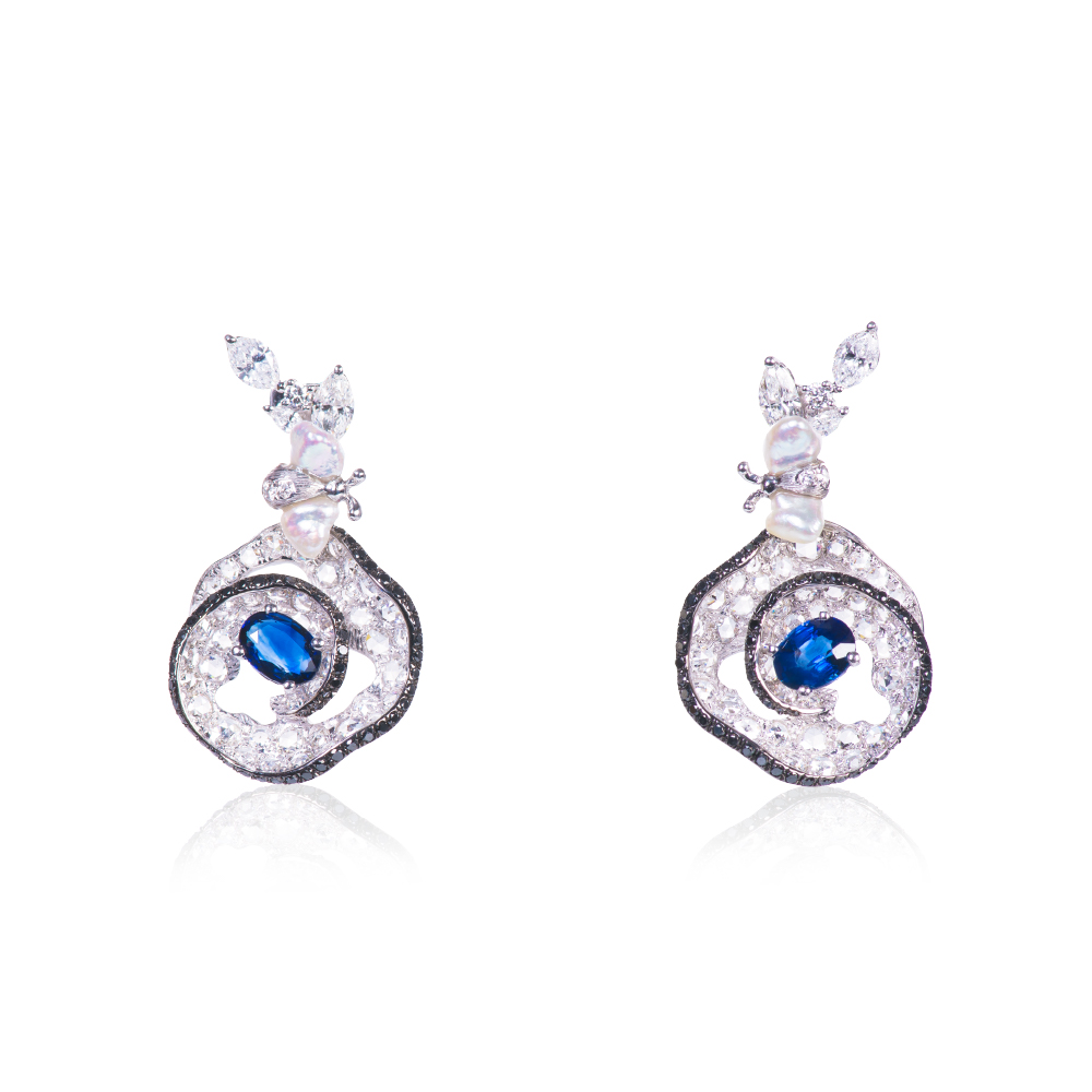 18白K金、藍寶石2顆2.47克拉、馬眼鑽4顆1.27克拉、馬眼鑽2顆0.1克拉、無核珠4顆、鑽石94顆2.84克拉