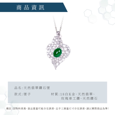 18白K金、天然翡翠1顆、玫瑰車工鑽59顆 5.07克拉、鑽石31顆 0.32克拉