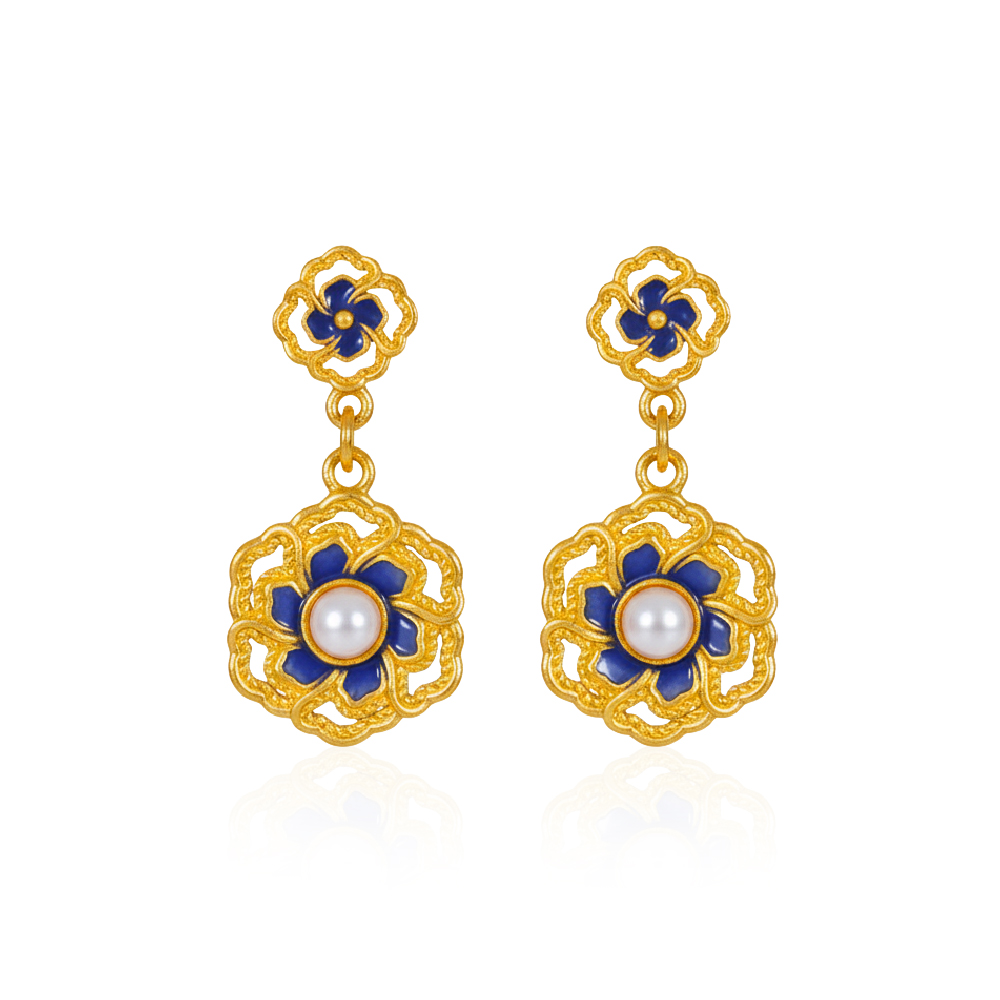 玉窗花珠古法金耳環