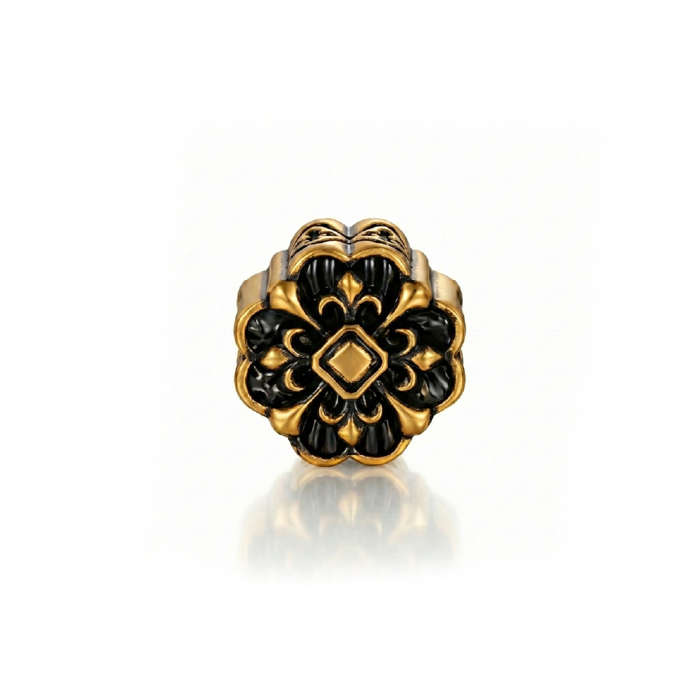堆疊層次古法黑影金鑽石戒