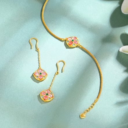 愛戀繽紛古法金螺鈿套鍊