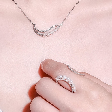 18K白金、天然日本養珠9顆、鑽石58顆 0.19克拉