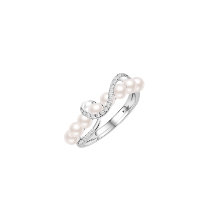 18K白金、天然日本養珠8顆、鑽石32顆 0.14克拉