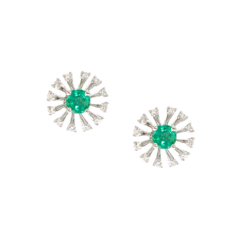 18K白金、祖母綠、2顆 0.44克拉、鑽石24顆 0.27克拉