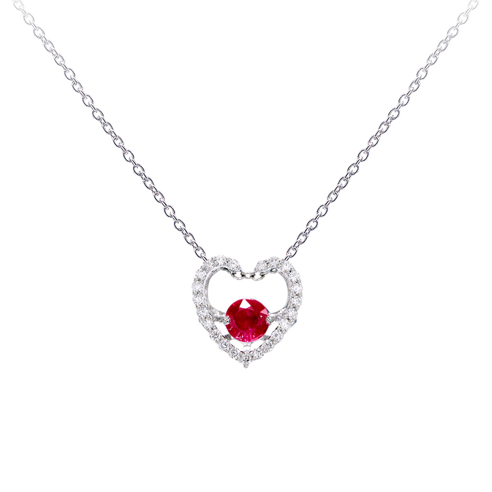 18K白金、天然紅寶石1顆 0.25克拉、鑽石23顆 0.12克拉