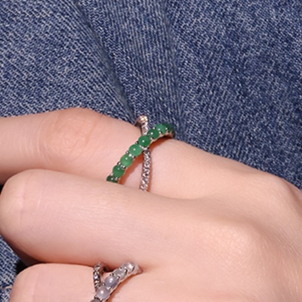 18K白金、天然翡翠10顆、鑽石20顆 0.18克拉
