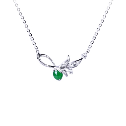 18K白金、天然翡翠1顆、鑽石15顆 0.15克拉