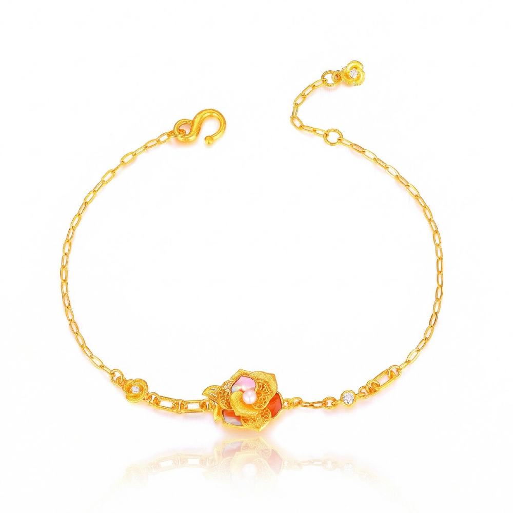 粉貝嫣然古法金珍珠手鍊